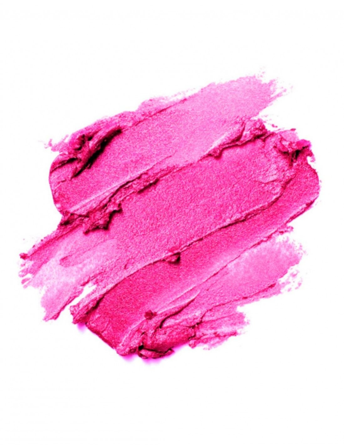 Stick labial metalizado de larga duración, nutritivo e hidratante de color fresa con destellos rosas, con textura cremosa, suave y un acabado homogéneo.