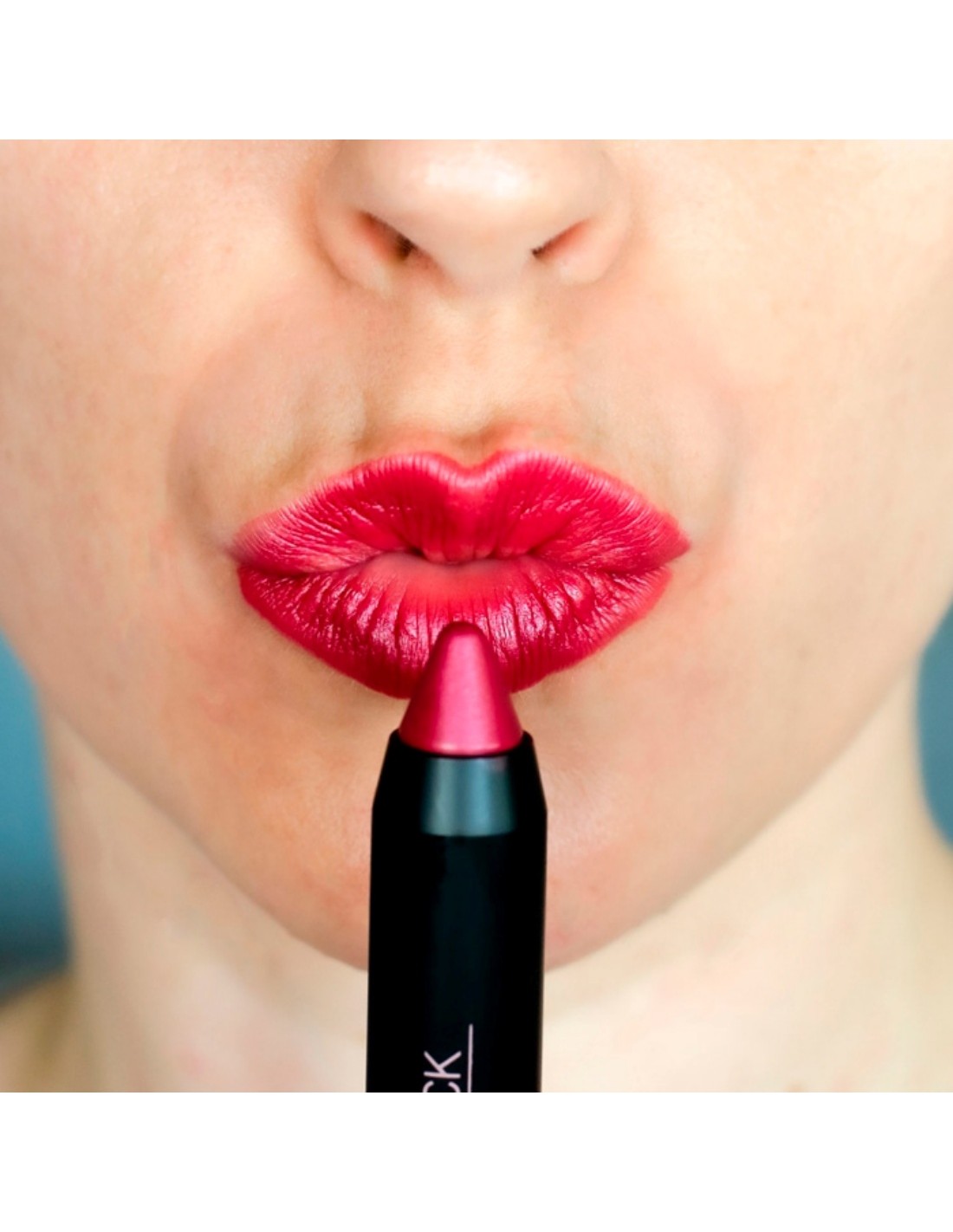 Stick labial metalizado de larga duración, nutritivo e hidratante de color cereza intenso metalizado, con textura cremosa, suave y un acabado homogéneo.