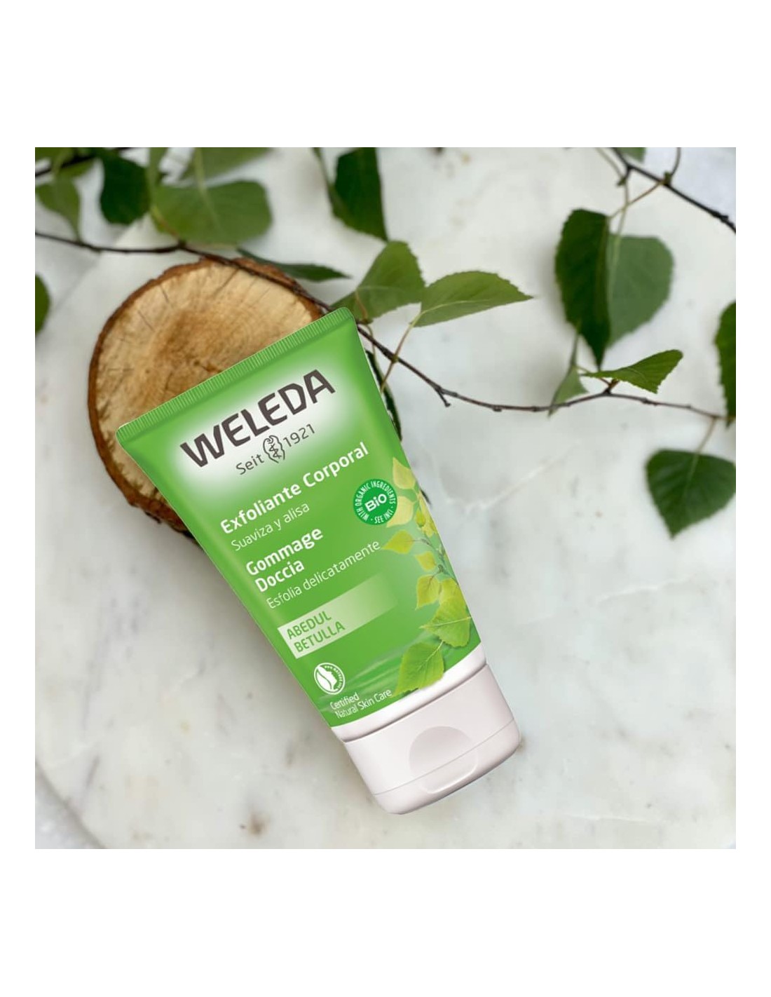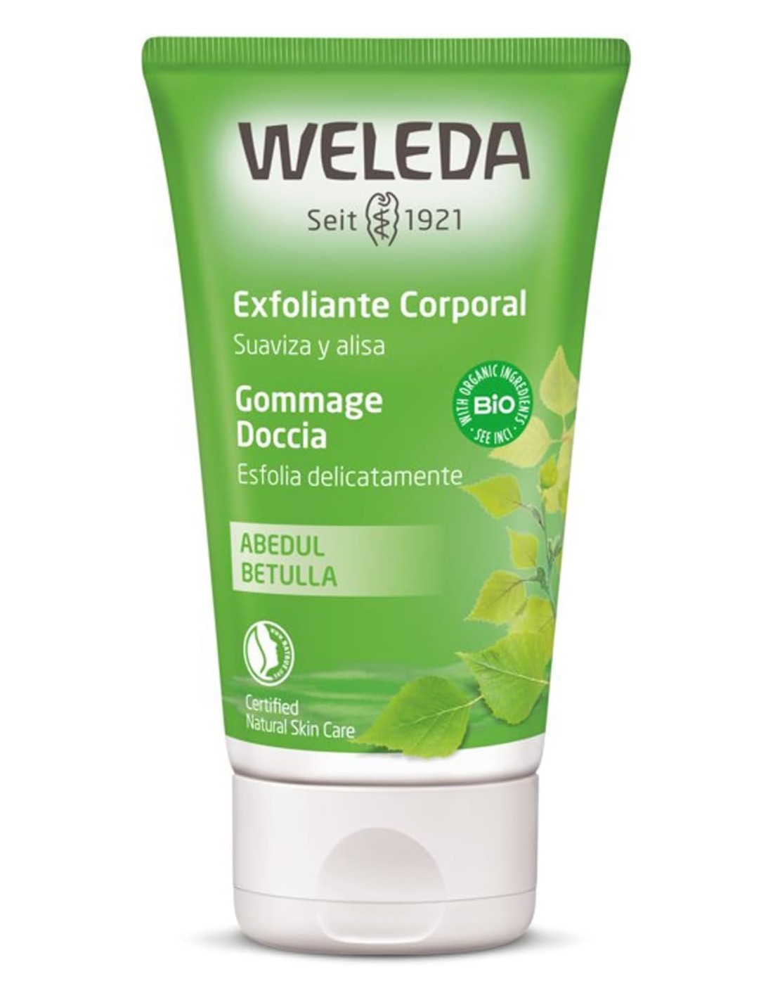 Gel exfoliante corporal de abedul con finas perlas de cera natural que elimina de forma suave y eficaz las células muertas y reduce y mejora la celulitis.
