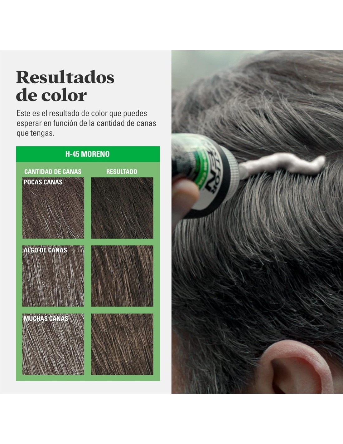 • Para hombres adultos que desean cubrir sus canas en cabellos morenos.