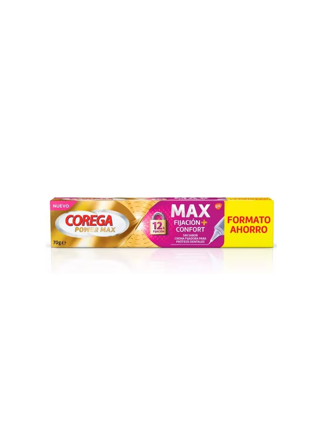 Corega Power Max Fijación+Confort Crema Fijadora Prótesis Dentales Sin Sabor 70 g
