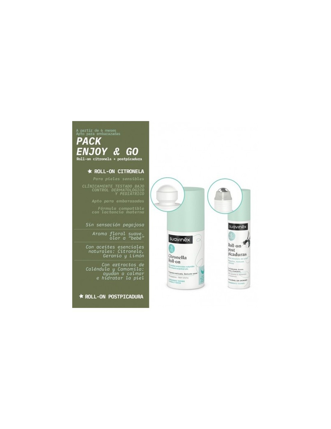 Suavinex Set Enjoy&Go +6 meses Roll-on Citronela 50 ml + Roll-on Post Picaduras 15 ml