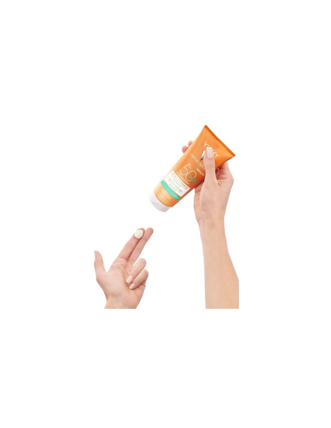 VICHYFotoprotector facial y corporal SPF 50+, en textura leche-gel ligera y fundente, resistente al agua. Se puede aplicar sobre la piel seca o mojada. Previene las quemaduras solares y el envejecimiento prematuro en todo tipo de pieles. Proporciona una agradable sensación de frescor y confort durante todo el día. Con filtros fotoprotectores frente a las radiaciones UVA/UVB.